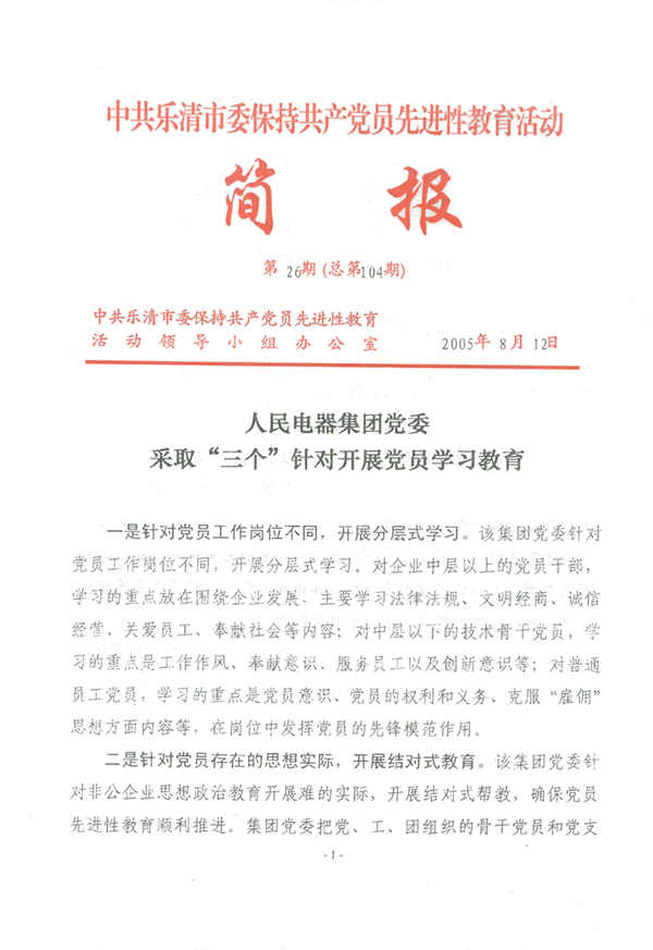 中共乐清市委保持共产党员先进性教育活动简报